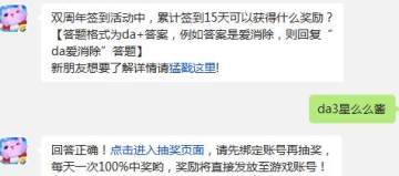 【答题格式为da+答案,例如答案是爱消除,则回复“da爱消除”答题】
