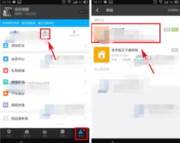1)打开【陌陌】首页后点击导航栏【个人】,在个人页面点击头像栏下方【群组】。接着点击你要发布的帖子的【群】。(如下图)