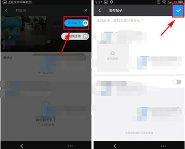 3)选择点击【发布帖子】,编辑好帖子内容后点击右上角【√】即可。(如下图)
