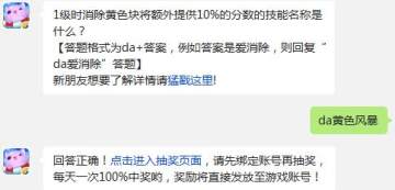 天天爱消除1级时消除黄色块将额外提供10%的分数的技能名称是什么