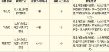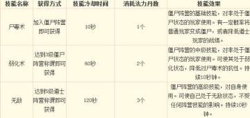 僵尸阵营技能: