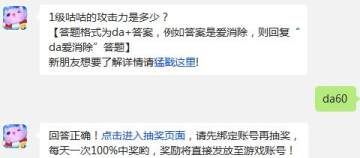 作者:qqtn小影 人气:0天天爱消除1级咕咕的攻击力是多少?8月27日每日一题活动已经更新,今天的题目就是考验玩家们玩游戏的时候细不细心了,下面一起来看看天天爱消除8月27日每日一题的答案吧。