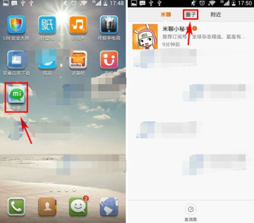 1)首先先打开【米聊2015】。进去后点击【圈子】。(如下图)