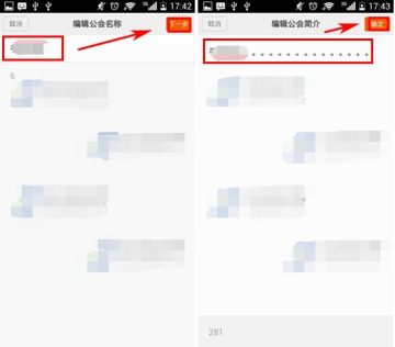 3)进去之后输入自己的公会名点击【下一步】,接着填写公会简介点击【确定】。(如下图)