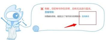 2、如果确认了账号或者密码都是正确的,还是登陆异常,那么这时我们要在出现提示异常的窗口里找到“在线申诉”这个选项,并点击打开它。