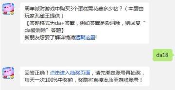 作者:qqtn小影 人气:0天天爱消除周年派对游戏中购买3个蛋糕需花费多少钻?9月2日每日一题活动已经更新,今天的题目就是考验玩家们玩游戏的时候细不细心了,下面一起来看看天天爱消除9月2日每日一题的答案吧。