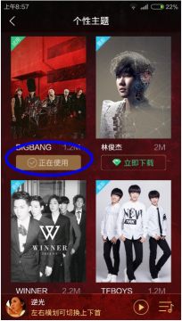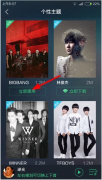 你会在“个性主题”中看到好多明星的主题。小编就拿bigbang举个栗子吧,点击下面的立即使用。