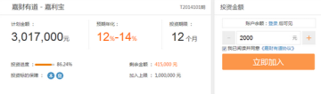 点击“我要投资”,可选择“债权列表”、“嘉财有道”或“转让专区”浏览投资产品。如下为“嘉财有道”投资计划。