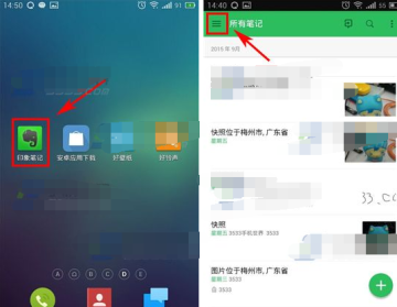 1)打开【印象笔记】,接着点击左上角【三】。(如下图)