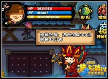 赠送地藏菩萨鲜花可获得攻击加成buff状态,效果:30分钟100点攻击