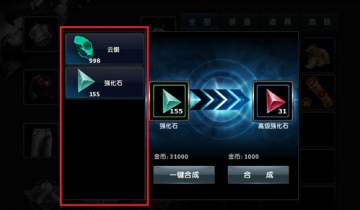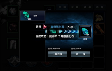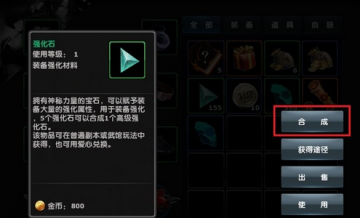 进入合成界面后,左栏会显示所有可以合成的道具。选中要合成的道具,点击一键合成并消耗少量金币即可获得更高级的道具。