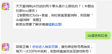天天爱消除pk对战的两个拳头是什么颜色的?