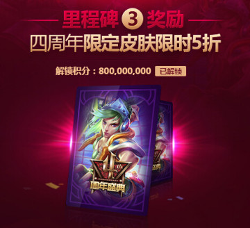 英雄联盟2015四周年狂欢盛典落幕已经1周的时间了,大家是否有在游戏中碰到过英姿飒爽的“电玩勇者-锐雯”呢。在广大玩家的共同努力下,大家在四周年“全民参与攒积分”活动中达成了里程碑3,相应的为了回应大家的热情,英雄联盟将于9月15日10:00在游戏商城限时上架四周年限定皮肤“电玩勇者 锐雯”,并进行限时半价销售。