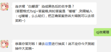 作者:qqtn小影 人气:0奇迹暖暖连衣裙白翩语染成黑色后的名字是?9月15日每日一题活动已经更新,今天的题目就是考验玩家们玩游戏的时候细不细心了,下面就和小编一起来看看奇迹暖暖9月15日每日一题的答案吧。