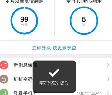 四、点击完成之后,就可以看到钉钉密码修改成功的提示了,以后就可以使用钉钉新密码登陆了。