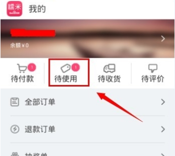 2、进入糥米我的,以后点击【待使用】就是没有用过的和过期的服务才可以退款的。