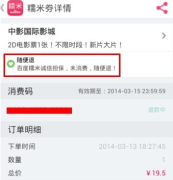 百度糯米怎么退电影票 百度糯米退电影票图文步骤