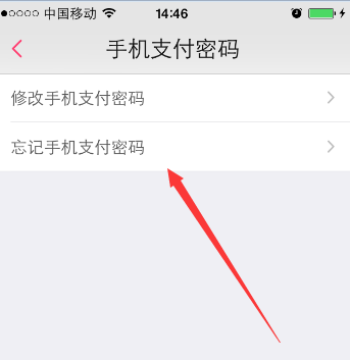 5、进入到“手机支付密码”后可以看到两个选项,第一个是修改密码的,第二个是找回密码,点击第二个“忘记手机支付密码”进入找到密码