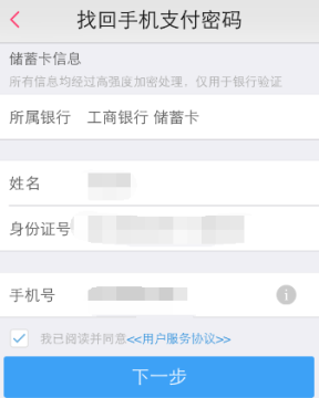 8、进入到这里需要再次验证身份,按要求输入姓名 身份证号 和预留在银行的手机号,再点击下一步