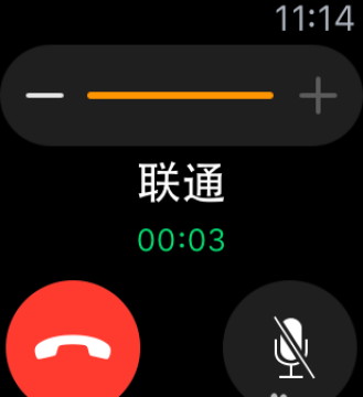 1、如下图所示,当我们在 Apple Watch 上拨通电话以后,声音也调节到了最大,但就是没有声音。