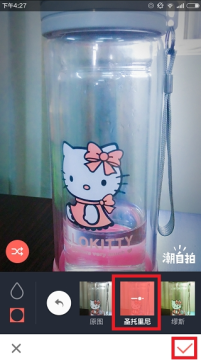 接着你可以为你的照片加特效。你也可以点击左下角的按钮随机加特效。
