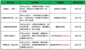 活动规则:活动期间,每天使用指定英雄参与3v3匹配都有额外奖励噢!
