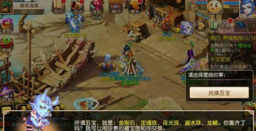 梦幻西游手游五宝用途:集齐一套后找傲来渔港的偷偷怪兑换一张高级藏宝图。