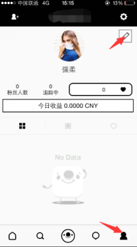1、首先,在17APP主页右下角点击个人中心,我们就可以看到个人主页右上角有编辑的选项,点击进入;