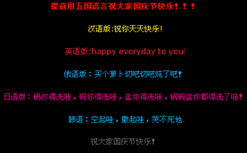 2015国庆节祝福留言代码最新版 各国送给国庆节的祝福语 时间:2015/9/29 17:00:00 作者:qqtn强柔 人气:0 效果如下:在想念你的那些日子里,即使难熬也是充实的,而如今,断了念想,即使痛苦折磨我相信也会过去的。加载全部内容