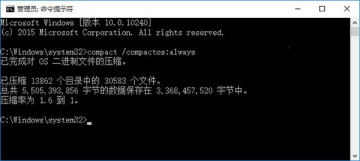 熟悉DISM映像部署和管理工具的朋友可以使用该工具以Compact压缩方式安装Windows10,除此之外,用户也可以在系统安装完成后随时开启Compact压缩,已经有一些第三方工具提供了这一功能,如果不借助第三方工具的话也只需要一条命令即可,方法如下: