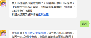 【答题格式为da+答案,例如答案是爱消除,则回复“da爱消除”答题】