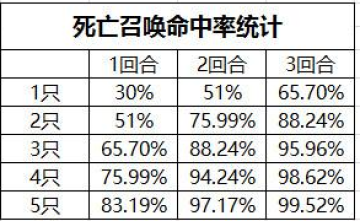 首先来看看死亡召唤的命中率(为至少命中1次死亡的几率):