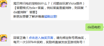 作者:qqtn小影 人气:0天天爱消除尾巴带闪电的宠物叫什么?10月9日每日一题活动已经更新,今天的题目就是考验玩家们玩游戏的时候细不细心了,下面就和小编一起来看看天天爱消除10月9日每日一题的答案吧。