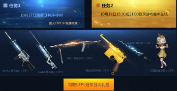 2、玩家如果在10月17日完成了上面两个任务,则次日可以再额外领取一份CFPL荣耀礼包。