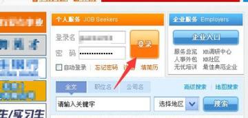 来到前程无忧首页,在登陆窗口,输入自己前程无忧的账号和登陆密码,然后点击“登陆”。(如下图)