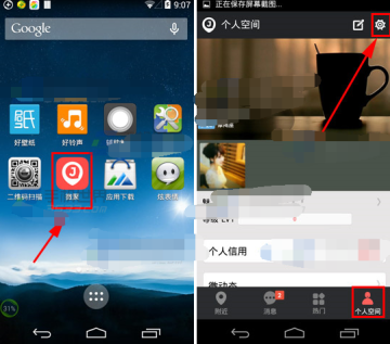 1)安装并打开微聚。进入【个人空间】点击右上角的【齿轮】按钮。(如下图)