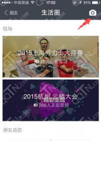 1、当你将支付宝更新至最新版本后,也就是9.2.0版本,你会发现在朋友选项中,出现了生活圈,和微信朋友圈的图标竟一模一样!然后选择右上角的相机标志,如图: