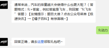 通常来说,汽车的排量越大会使得动力也更大呢喔,你回答对了吗?希望可以帮助玩家们领取天天飞车每日一题的奖励。