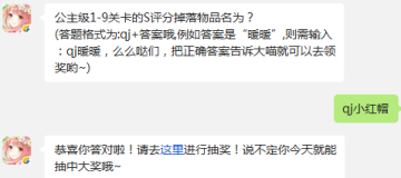 奇迹暖暖公主级1-9关卡的S评分掉落物品名为?