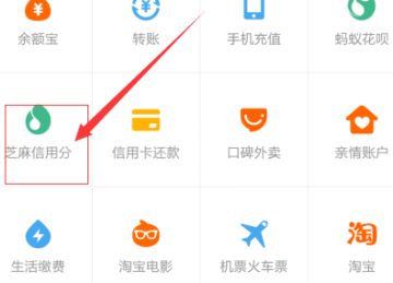 第一步进入支付宝主界面,然后在主页面,我们看到下面分类中有一个芝麻信用,我们点击打开它。