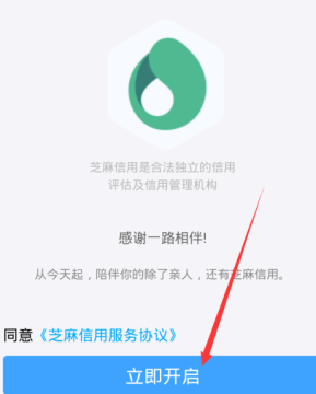 我们把鼠标移动到芝麻信用分上面,然后点击下,进入需要我们开启芝麻信用的界面,我们点击下面的立即开启即可。