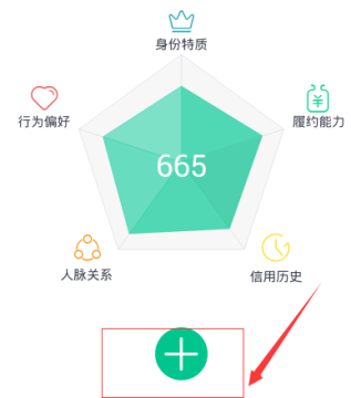 接下来我们点击滑动选项,进入一个芝麻信用分的信用界面,这时候我们看到最下面有一个加号的添加按钮,我们点击添加。