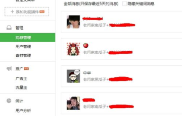 第一、我们正常登陆微信公众平台,进入后台,找到“管理”——“消息管理”,双击进入。如下图所示:
