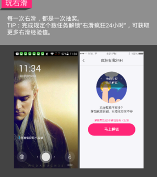 玩右滑赚钱其实就是手机解锁赚钱,每一次右滑,都是一次抽奖。
