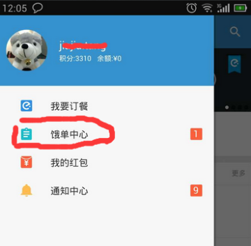 进入页面以后找到饿单中心的地方点开(新版的饿了么APP同样是在饿单中心查看)