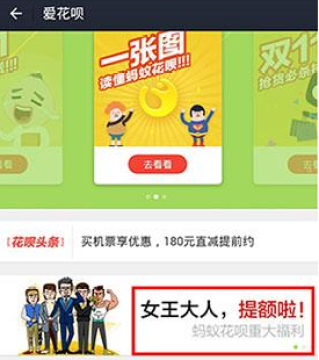 2、 进入蚂蚁花呗界——【爱花呗】——【女王大人,提额啦】