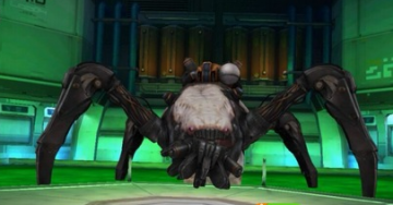 技能四:散射激光(一般伴随飞行虫出现,可不必理睬,只要不杵在一个地方不动就好了,天蛛骑士的激光要释放的时候迅速跑到地图边缘,天蛛骑士发射三次激光,每发射一次便会旋转一点点角度,所以我们也要稍微挪一点位置,更有机会躲避激光)