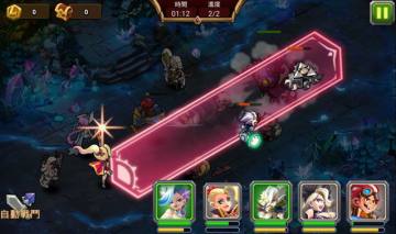 战斗流程采自动攻击,而当英雄头像下方的计量表满格时就可以手动施展技能。本作最大的特色就在于其采用了「指向性技能系统」,让玩家可以自行选择技能的攻击方向或位置。