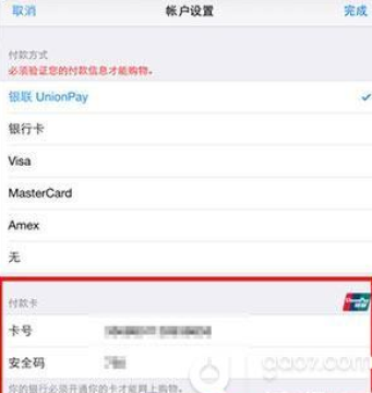 5、填写您的信用卡信息和个人信息,完成绑定即可!(AppStore绑定信用卡需扣除1元手续费,请知晓)