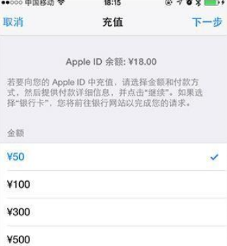 苹果账号Apple ID充值步骤(App Store目前支持账户进行50/100/300/500元人民币充值)
